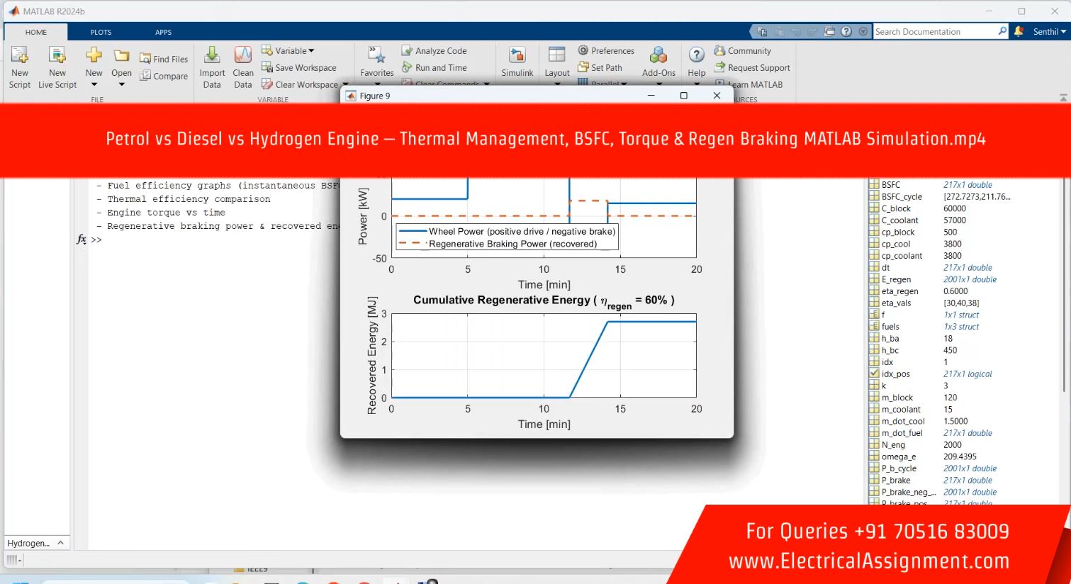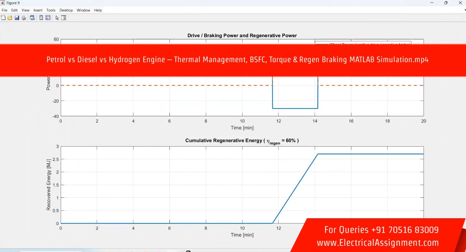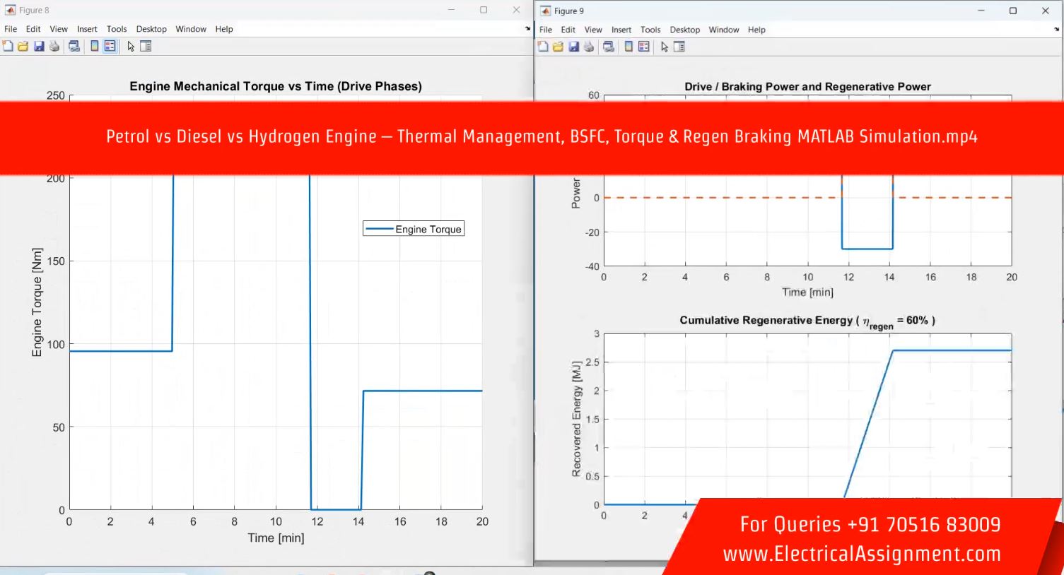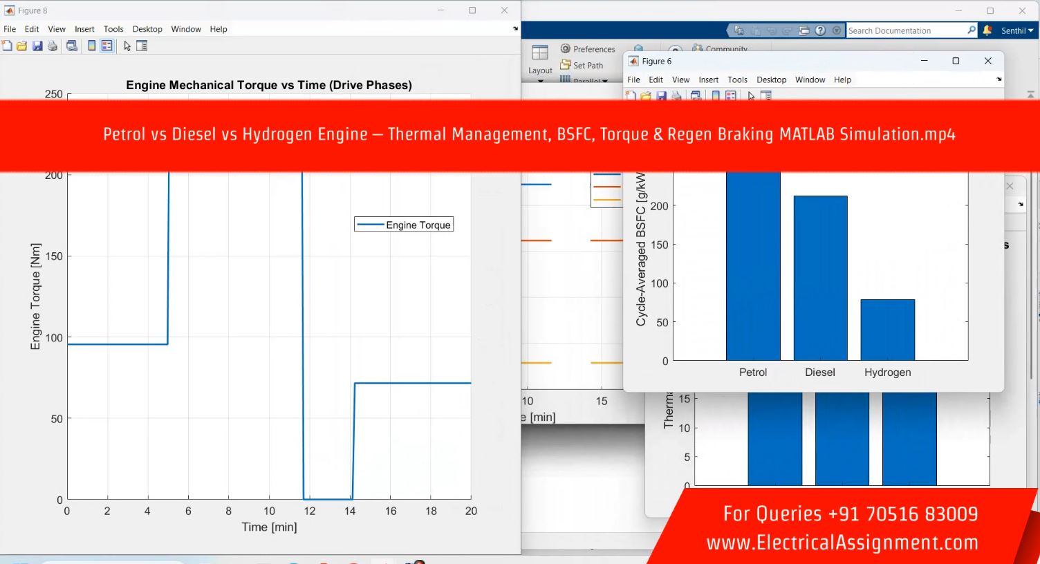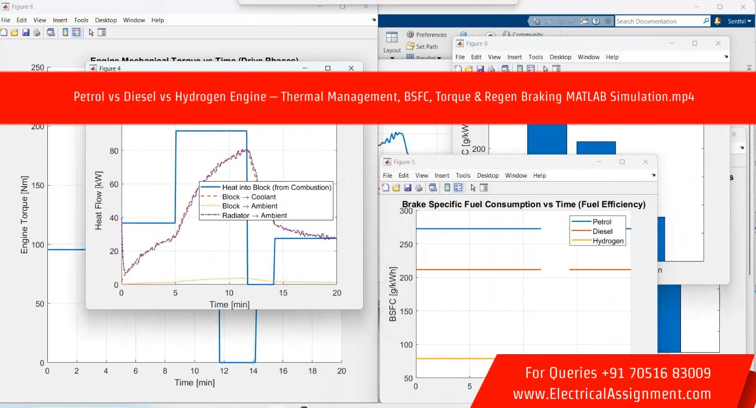 Electric Vehicle Projects > Petrol vs Diesel vs Hydrogen Engine – Thermal Management, BSFC, Torque & Regen Braking MATLAB Simulation