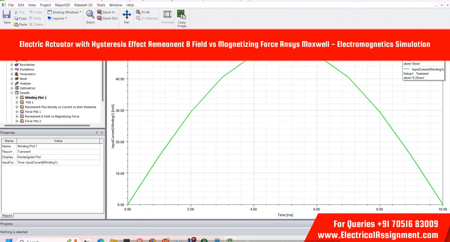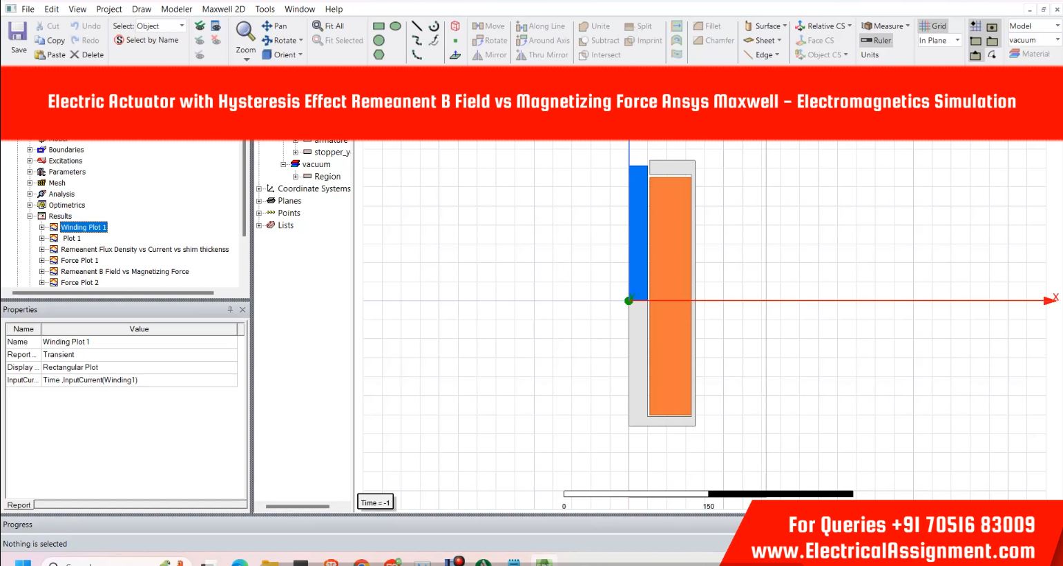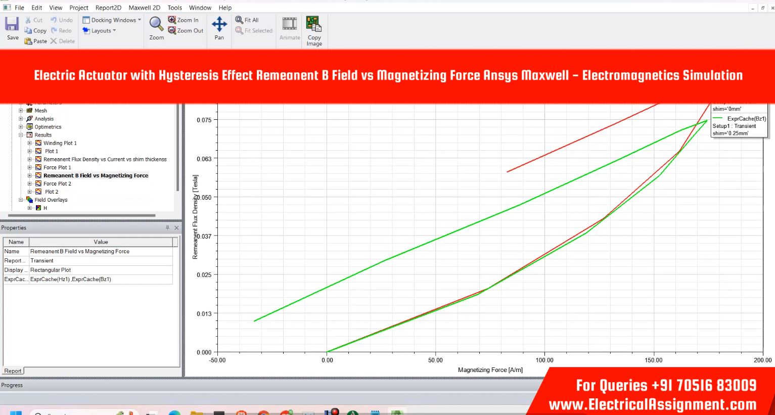 Electric Actuator with Hysteresis Effect Remeanent B Field vs Magnetizing Force Ansys Maxwell - Electromagnetics Simulation