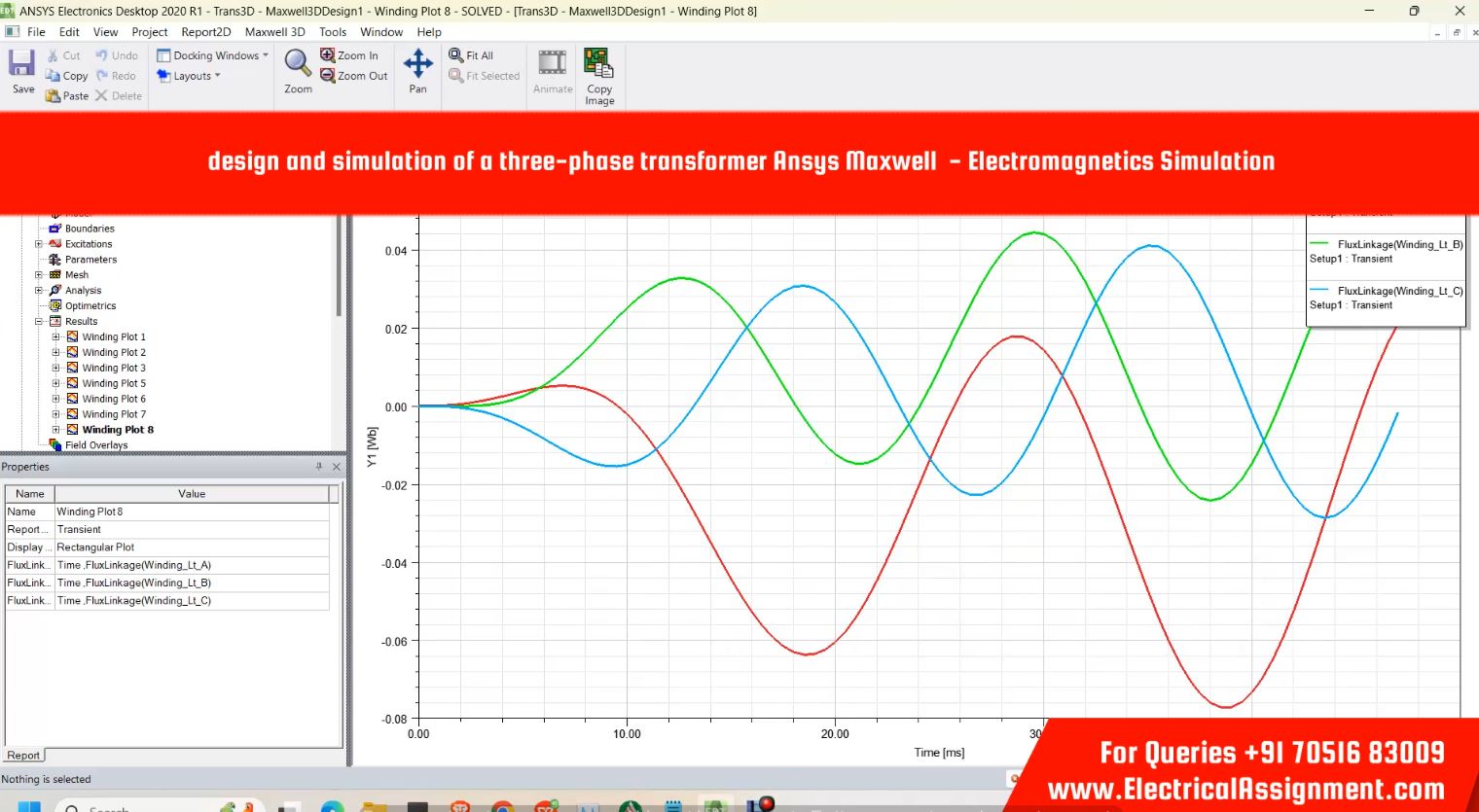 design and simulation of a three-phase transformer Ansys Maxwell - Electromagnetics Simulation