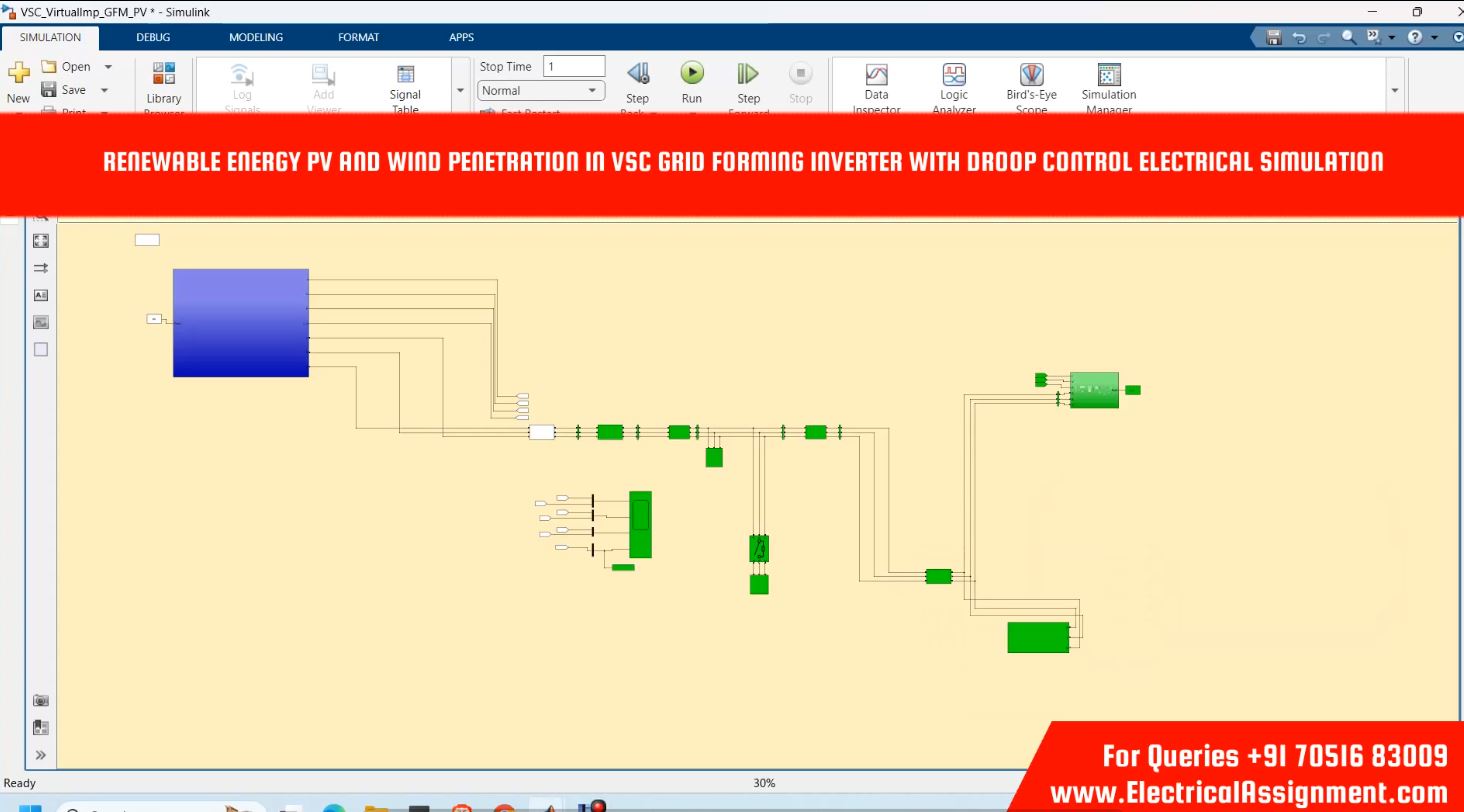 Electrical Matlab Simulink > RENEWABLE ENERGY PV AND WIND PENETRATION IN VSC GRID FORMING INVERTER WITH DROOP CONTROL ELECTRICAL SIMULATION