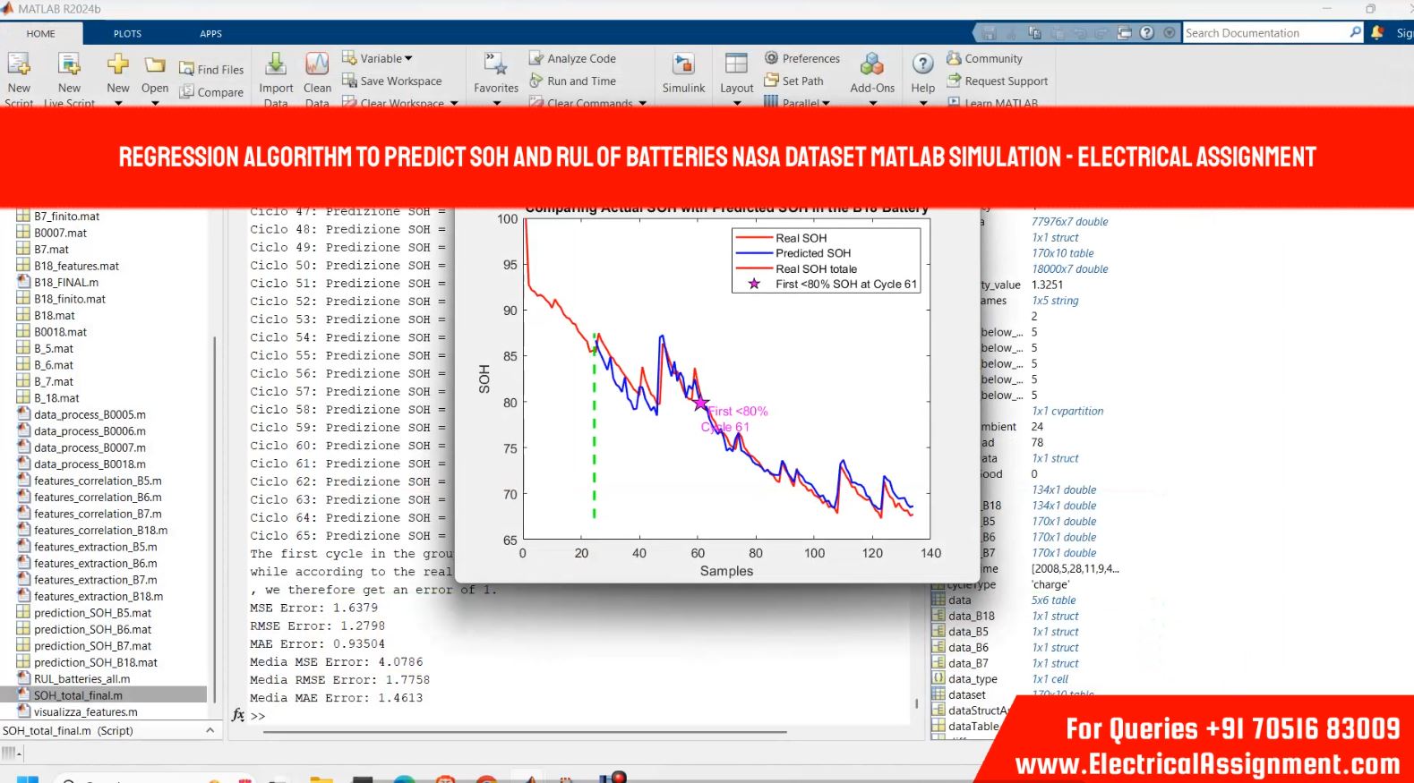 Regression algorithm to predict SOH and RUL of batteries NASA dataset Matlab Simulation - Electrical Assignment