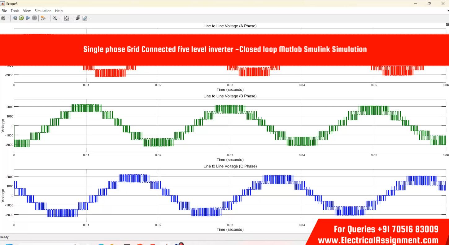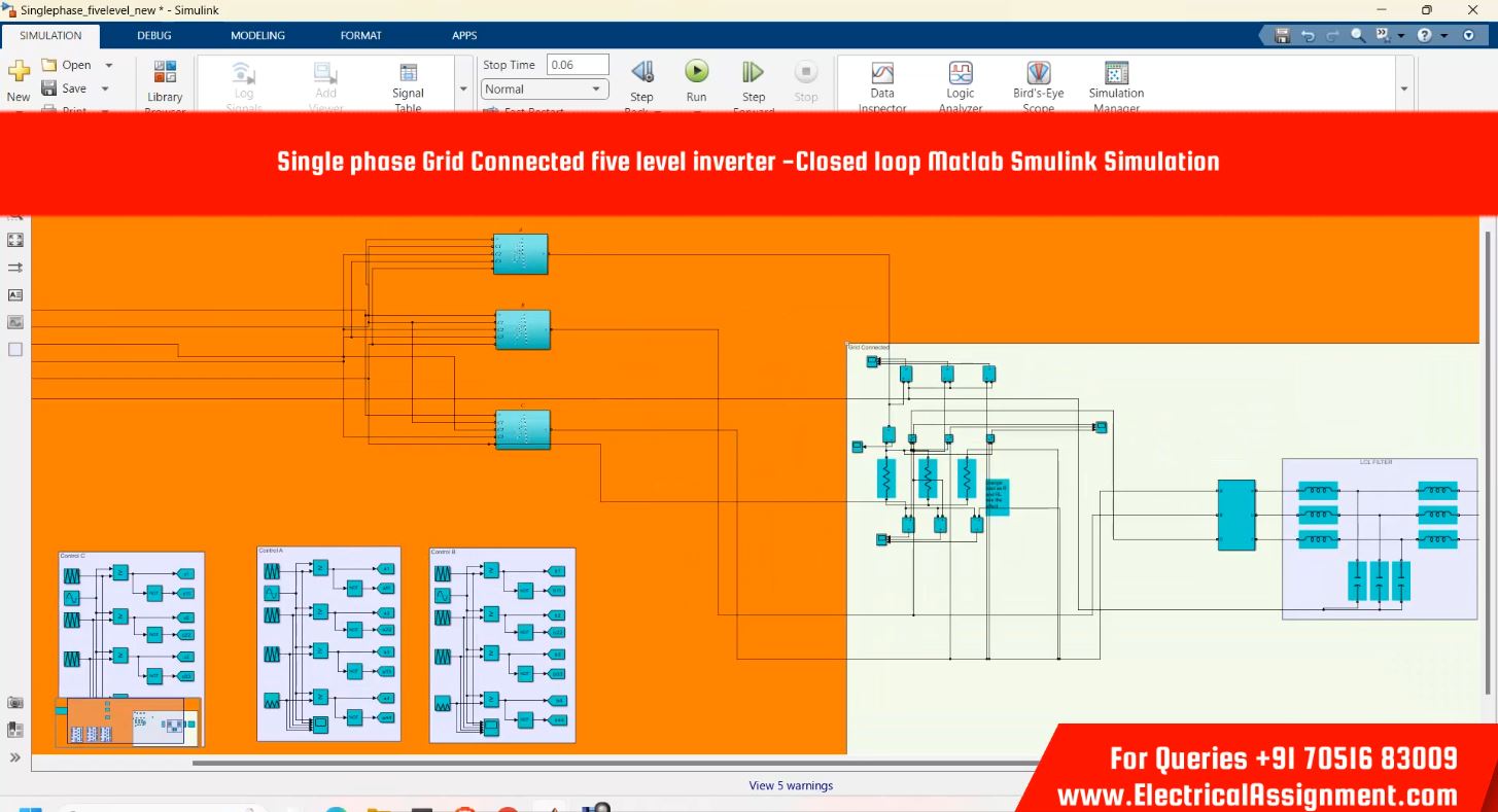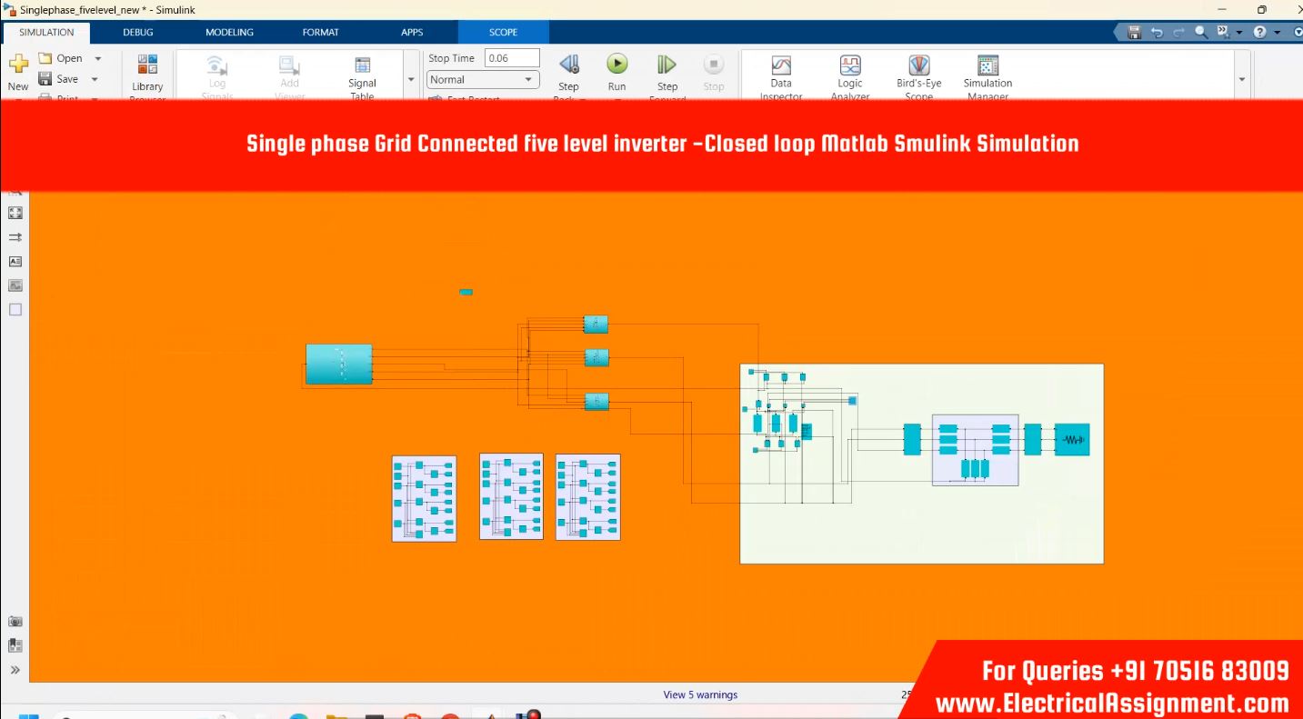 Single phase Grid Connected five level inverter -Closed loop Matlab Smulink Simulation