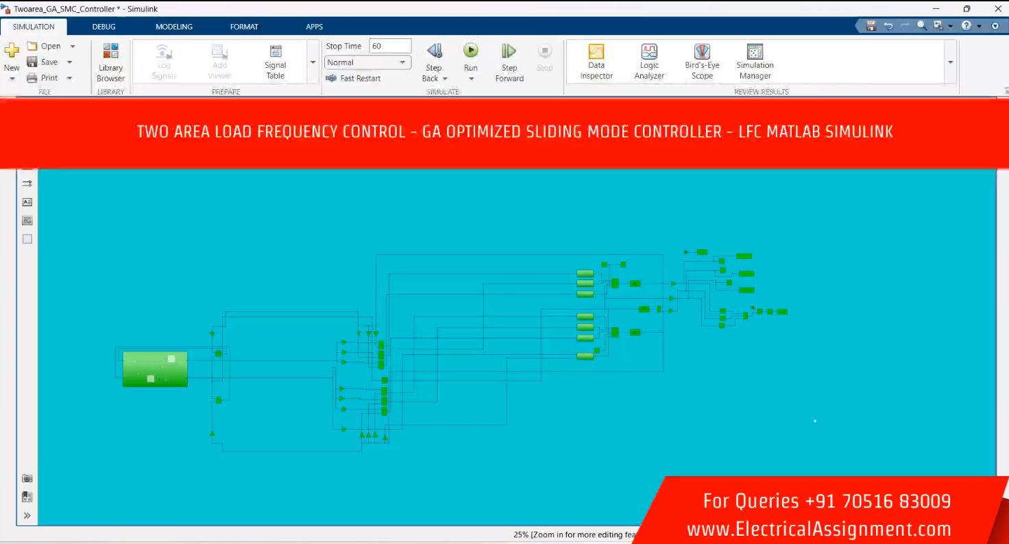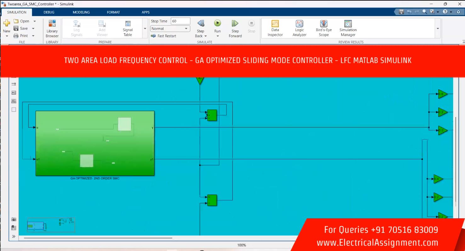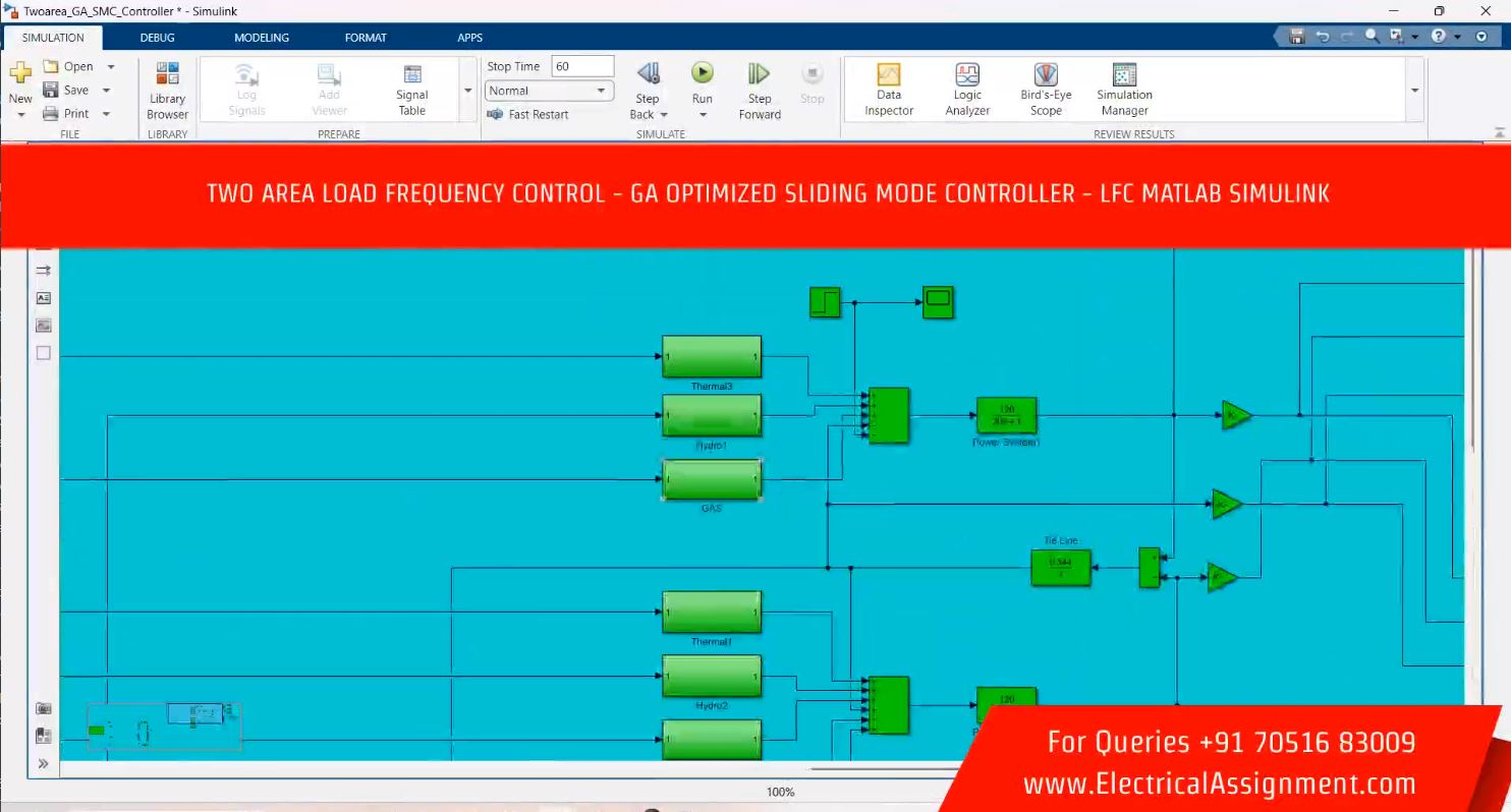 TWO AREA LOAD FREQUENCY CONTROL - GA OPTIMIZED SLIDING MODE CONTROLLER - LFC MATLAB SIMULINK
