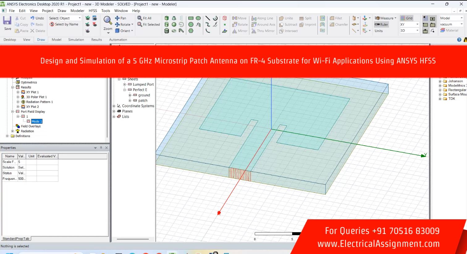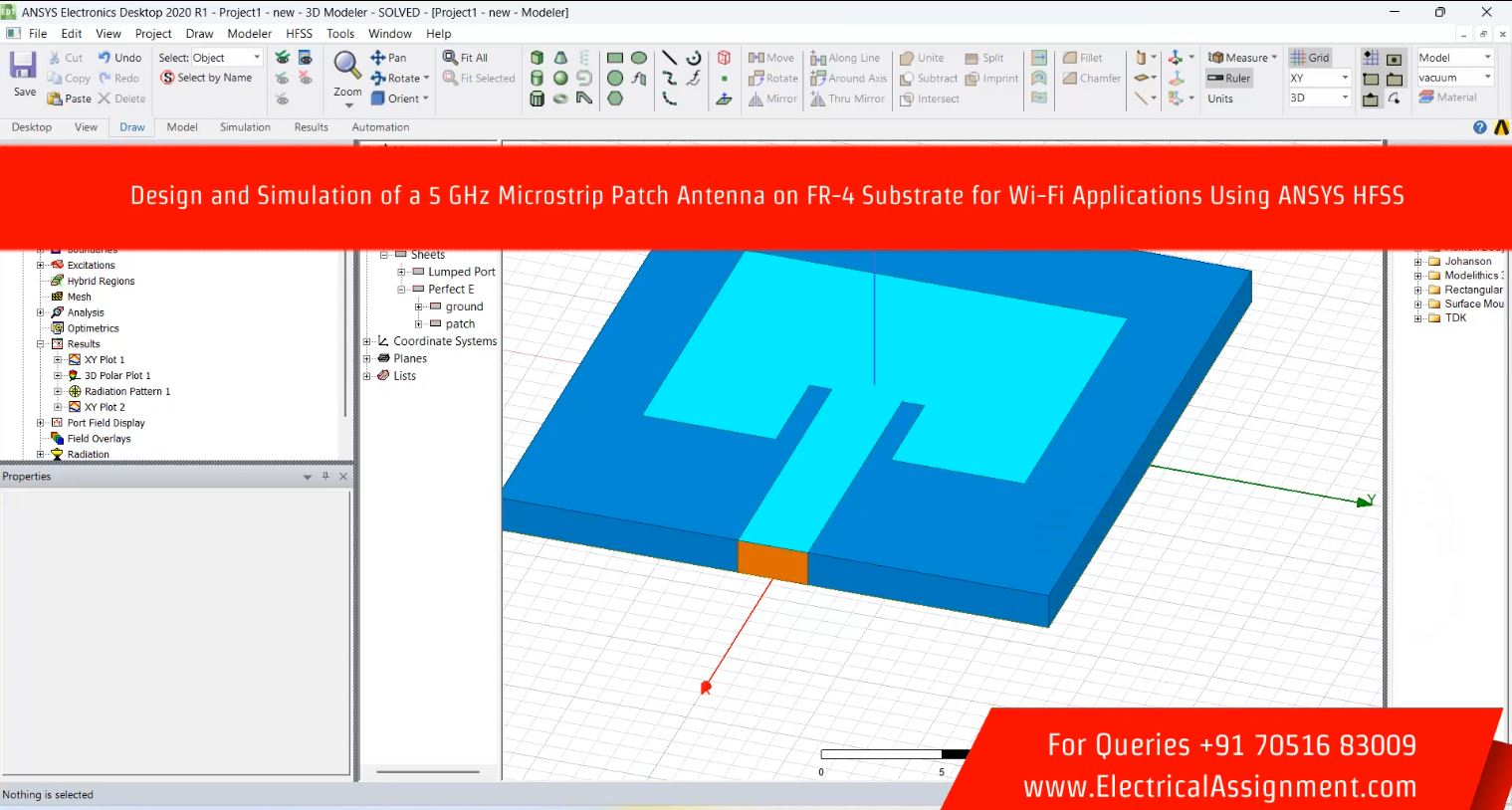 Electronics Antenna HFSS CST Projects > Design and Simulation of a 5 GHz Microstrip Patch Antenna on FR-4 Substrate for Wi-Fi Applications Using ANSYS HFSS