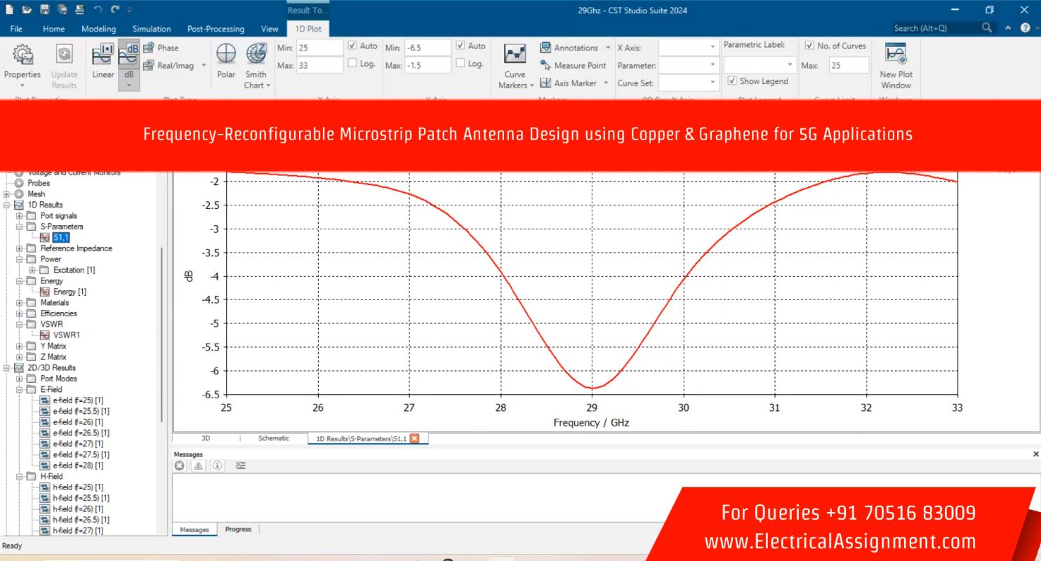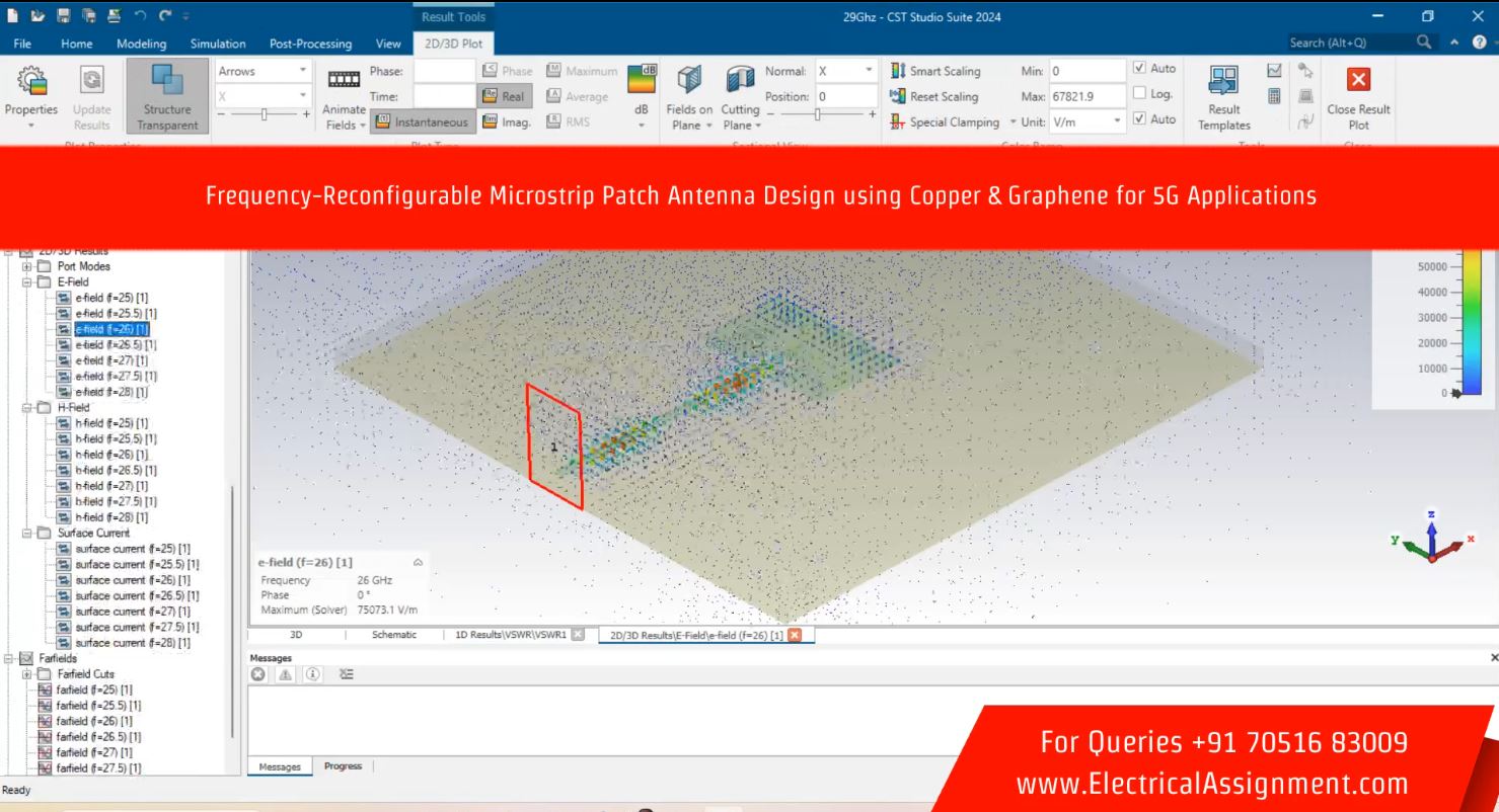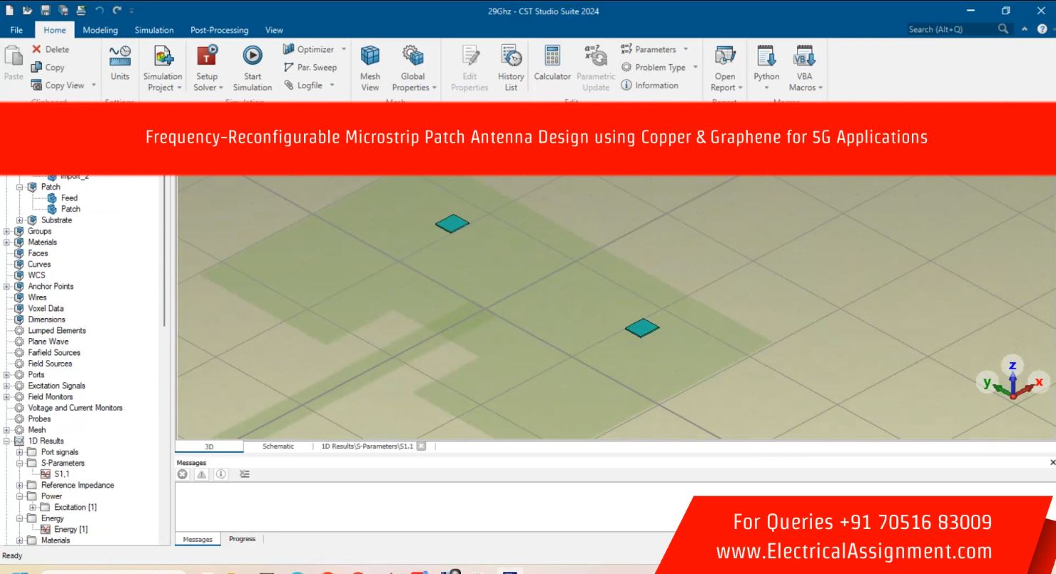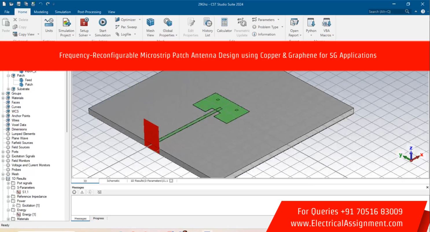 Electronics Antenna HFSS CST Projects > Frequency-Reconfigurable Microstrip Patch Antenna Design using Copper & Graphene for 5G Applications