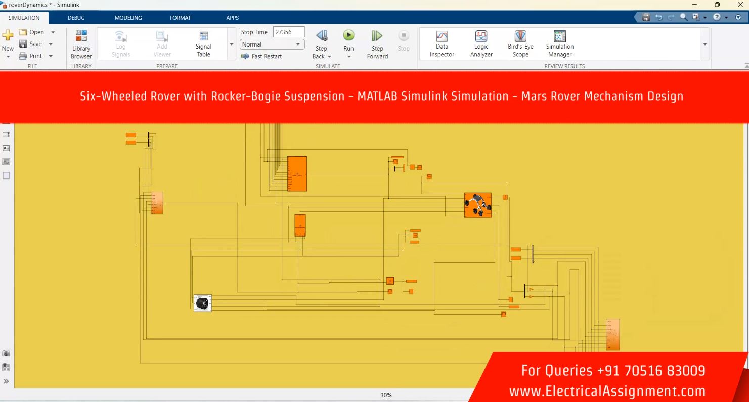 Matlab PhD Research Projects > Six-Wheeled Rover with Rocker-Bogie Suspension - MATLAB Simulink Simulation - Mars Rover Mechanism Design