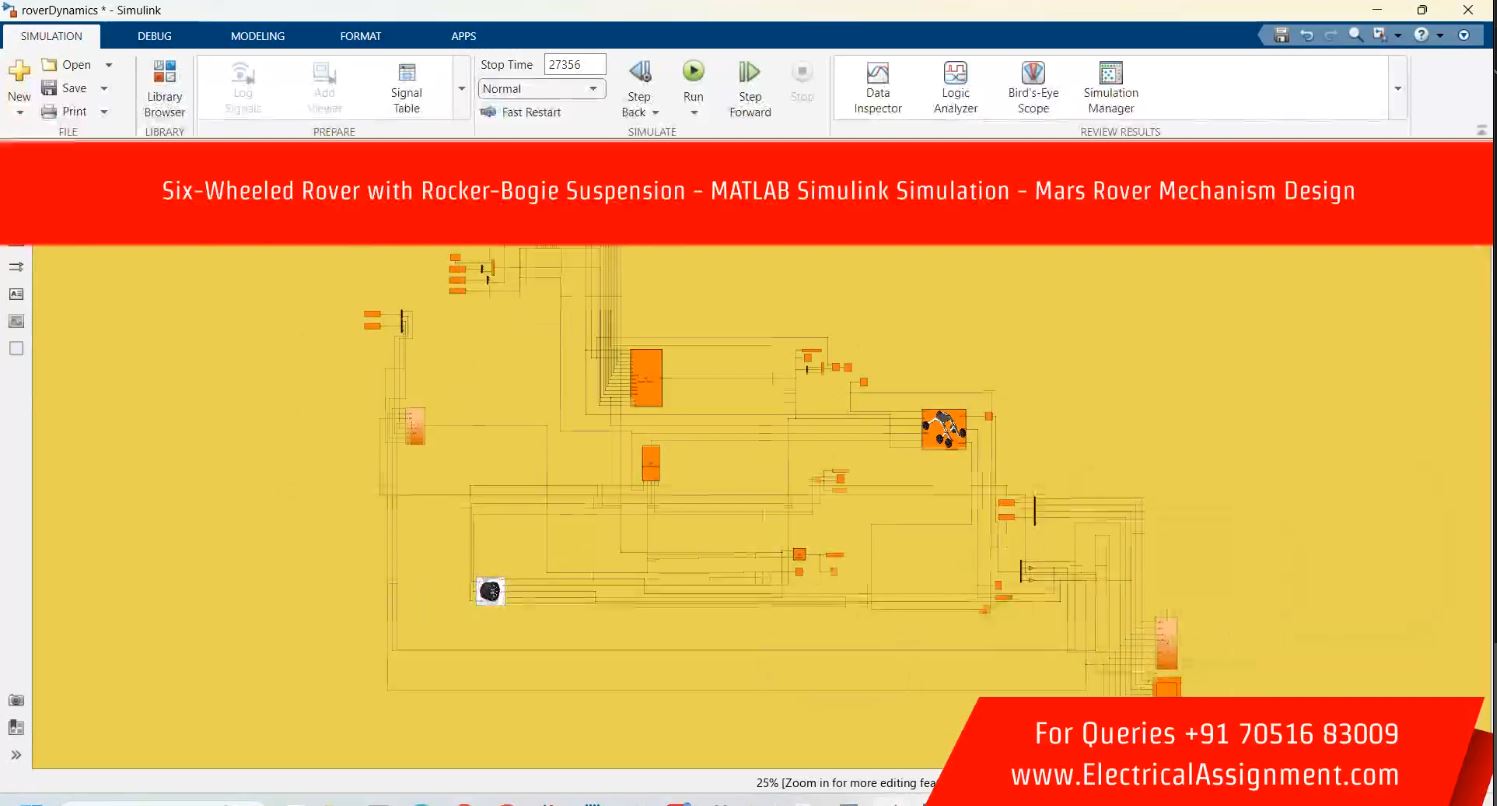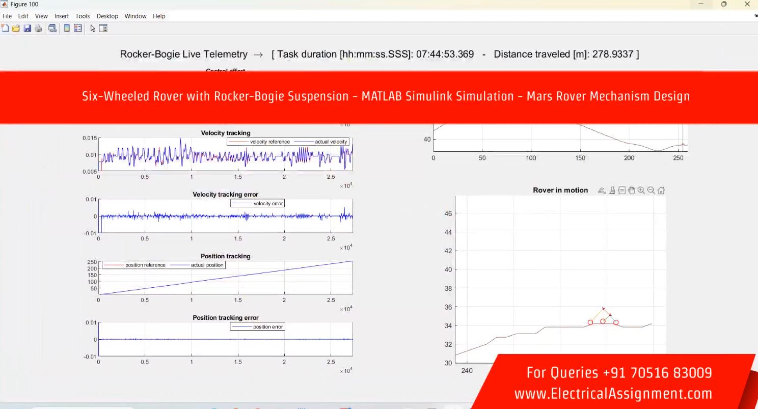 Six-Wheeled Rover with Rocker-Bogie Suspension - MATLAB Simulink Simulation - Mars Rover Mechanism Design